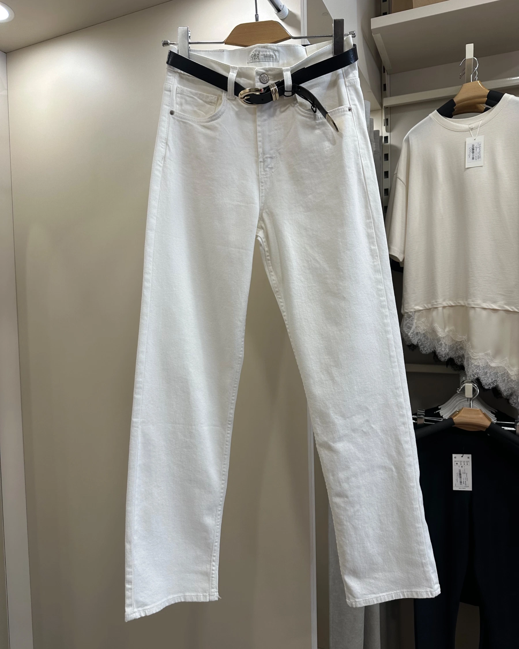 Молочні прямі стрейчеві джинси